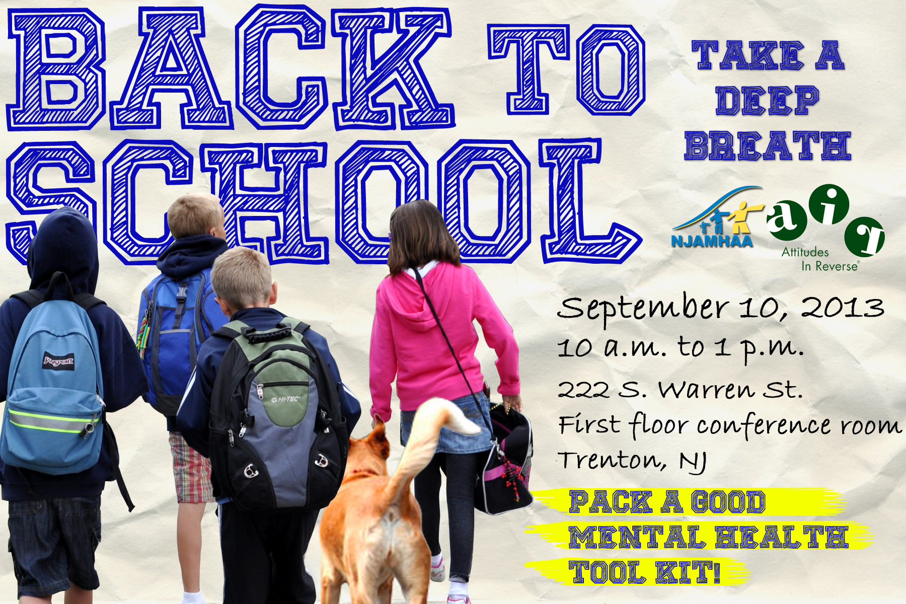 The New Jersey Association of Mental Health and Addiction Agencies, Inc. (NJAMHAA) and Attitudes in ReverseĀ® (AIR) invite you and your staff and colleagues to learn about essential resources to help students foster their mental health, recognize when they need help, know that treatment is effective and feel comfortable seeking treatment. We will present these resources and illustrate their effectiveness on September 10, 2013, which is National Suicide Prevention Day, from 10:00 a.m. to 1:00 p.m. in the Department of Human Services' first floor conference room at 222 South Warren St., Trenton, NJ.